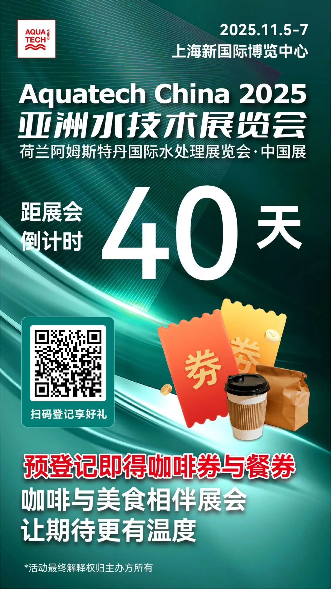 倒計時40天限定福利!領(lǐng)取亞洲水展門票 享逛展美食與咖啡~
